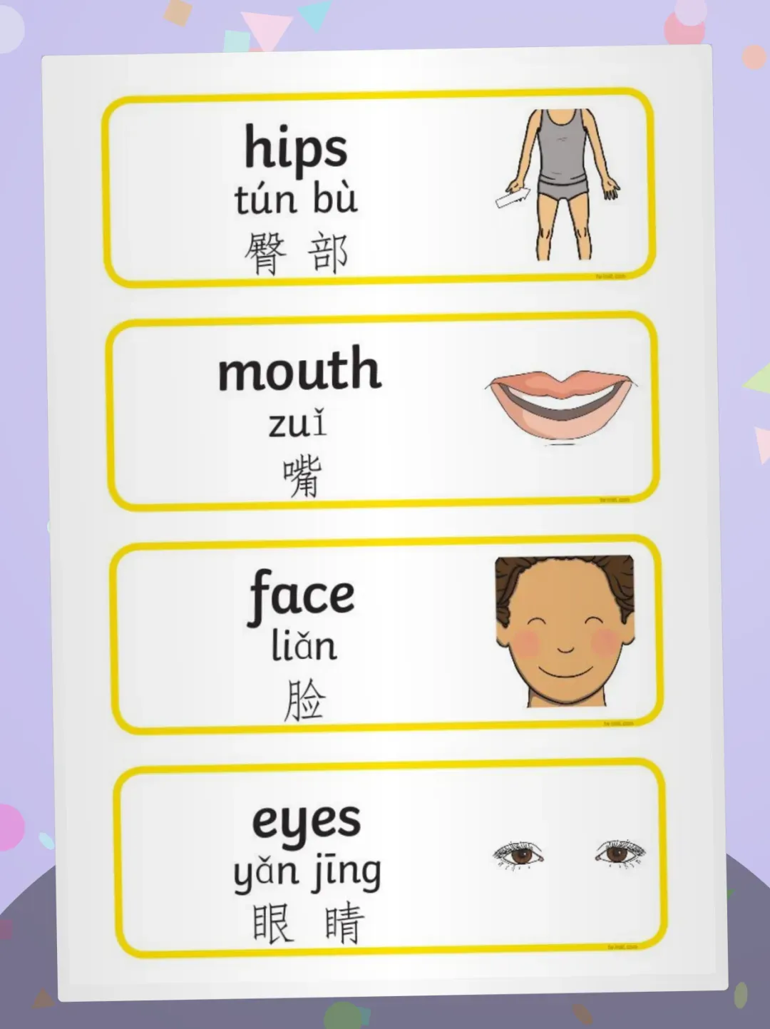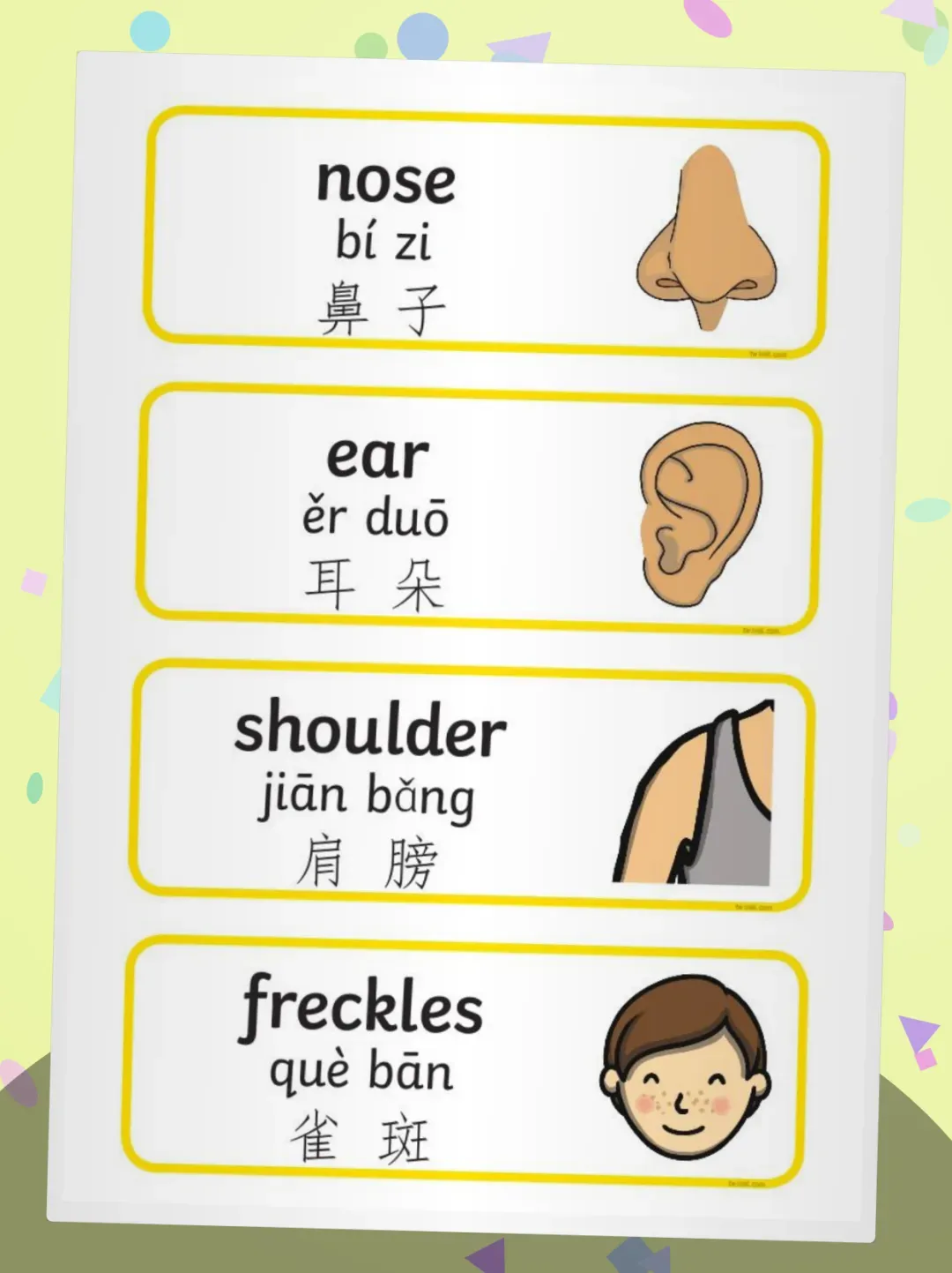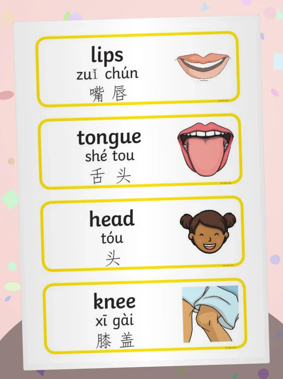 💡使用Tips:每天选3-5个部位互动指认+发音跟读,搭配简单指令游戏(如‘Touch your nose!’),强化记忆和口语输出