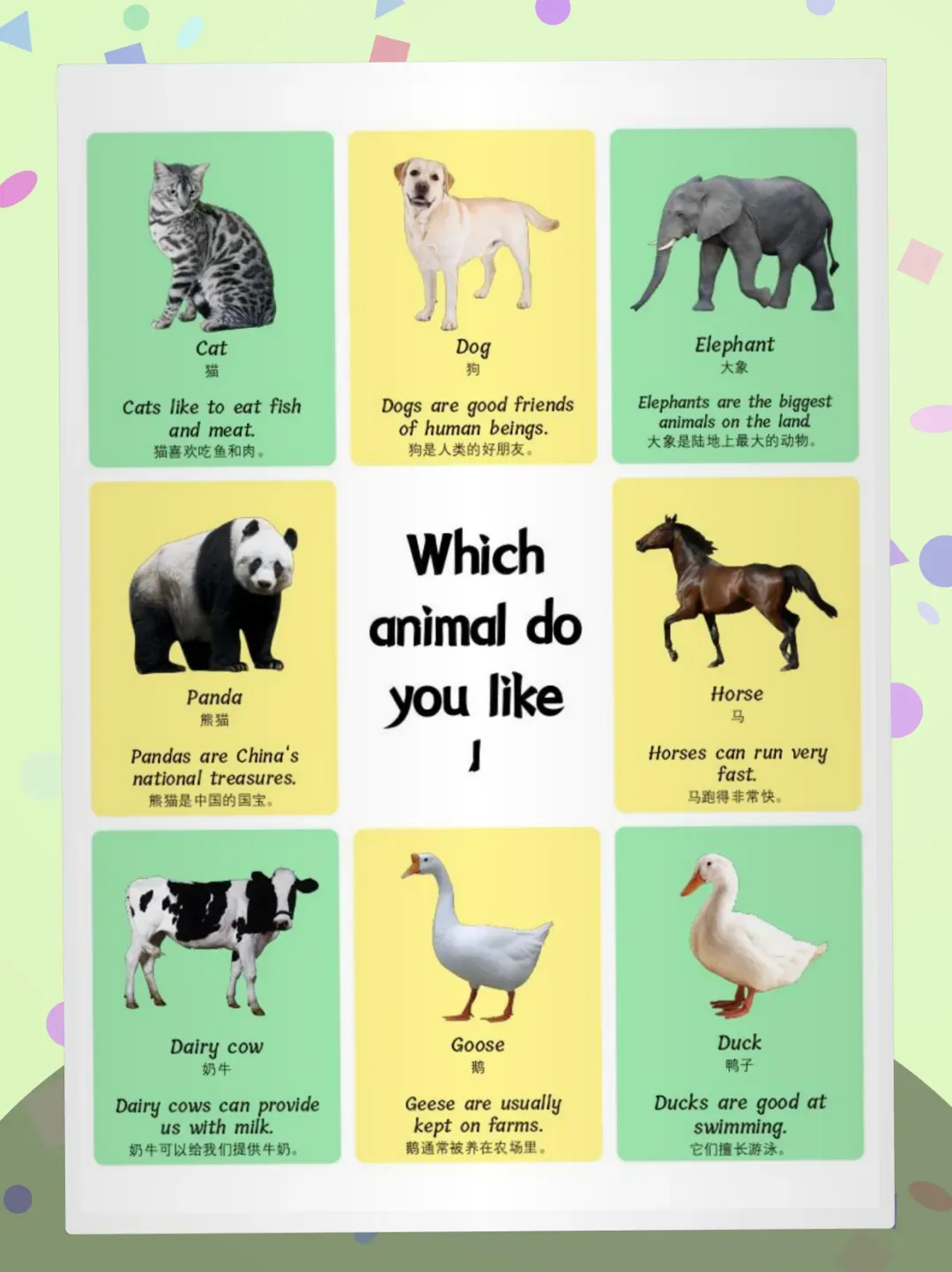💡使用tips:每天5分钟闪卡互动,配合指读+模仿发音+简单问答;建议搭配音频跟读,睡前复习效果更佳;可剪裁成实体卡片,用于游戏化学习
