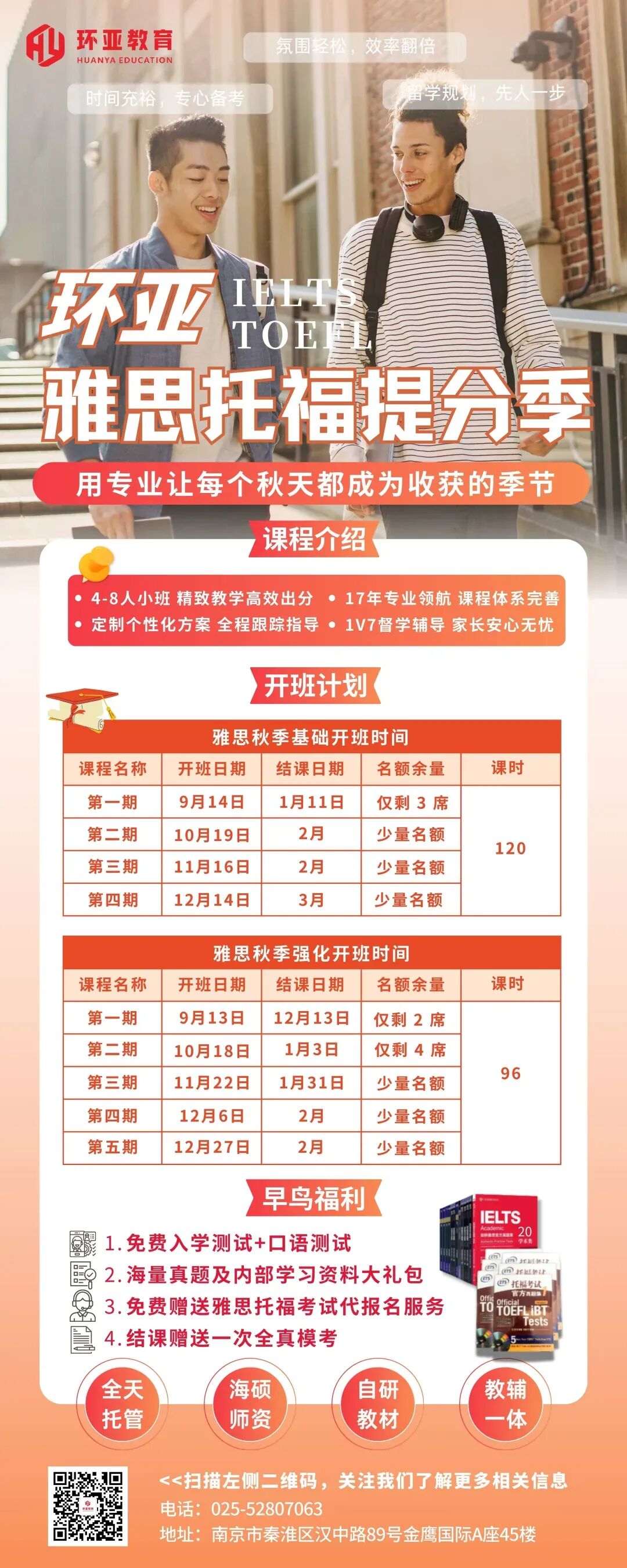 环亚教育一直致力于为广大准备留学的同学提供优质的学习资源和专业的雅思和托福培训服务。