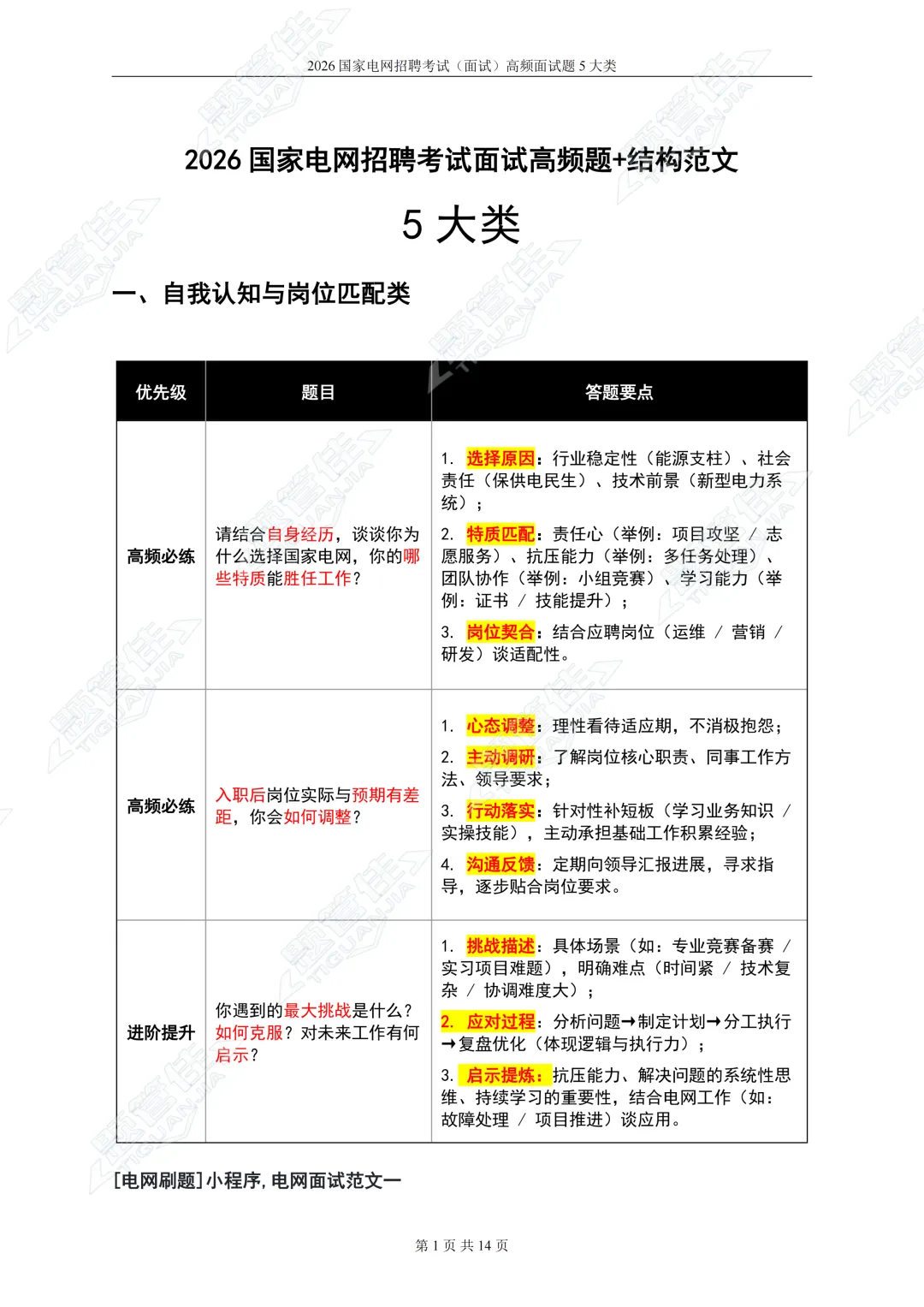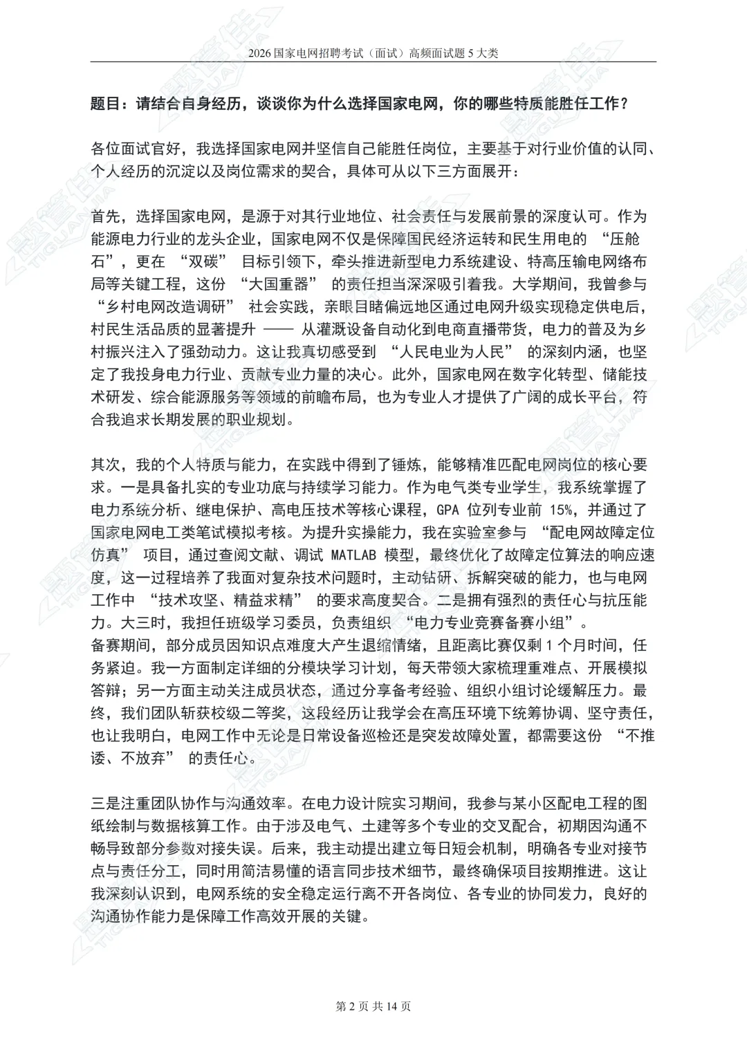 本站文章均为手工撰写未经允许谢绝转载:夜雨聆风 » 2026国家电网招聘考试5大核心面试题PDF下载