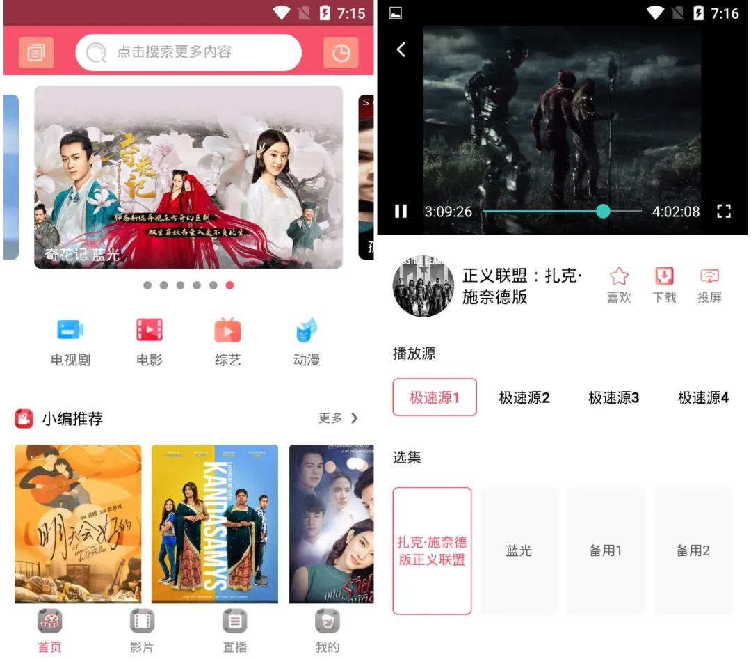 速度和片源都没什么说的,清晰度方面,大部分都是1080P吧,部分资源是高清和4K的,并且软件支持下载和投屏,功能上算是中规中矩。