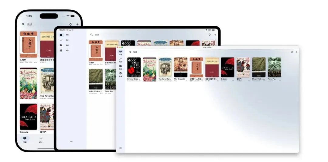 免费开源的电子书阅读器,支持 EPUB、MOBI、AZW3、FB2、TXT、PDF 等主流格式,可基于阅读内容生成心智图、提供随需翻译与词典查询、整理章节摘要与视角分析,阅读界面可调节字体、行间距、段落间距、边距、主题风格、对齐方式,还支持字体样式与背景调整,支持标注、笔记、文本转语音、整书中英翻译、简繁转换等特性,另外通过 WebDAV 实现书籍、笔记与阅读进度的同步,适用于 Android、iOS、Windows、macOS 甚至 Linux 平台。