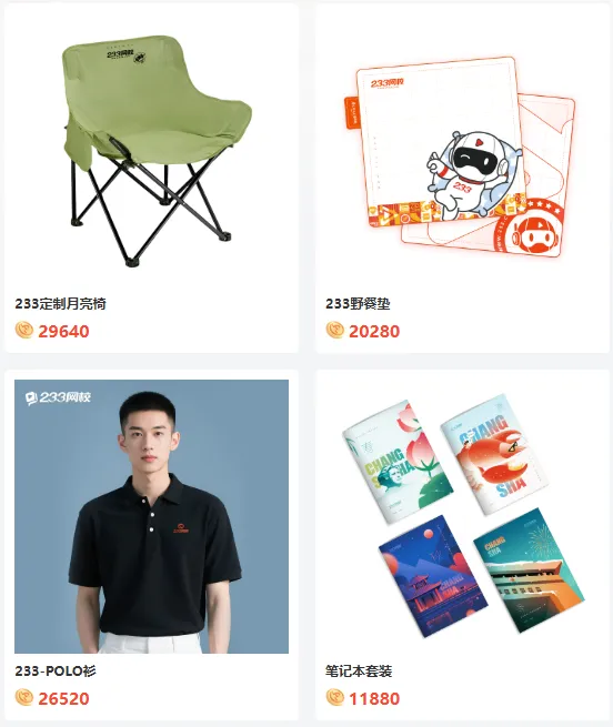 233积分可同比例兑换考证币,去233商城换品牌周边!野餐垫、保温杯、帆布包、笔记本、学习礼盒……学习装备焕然一新,动力满满!
