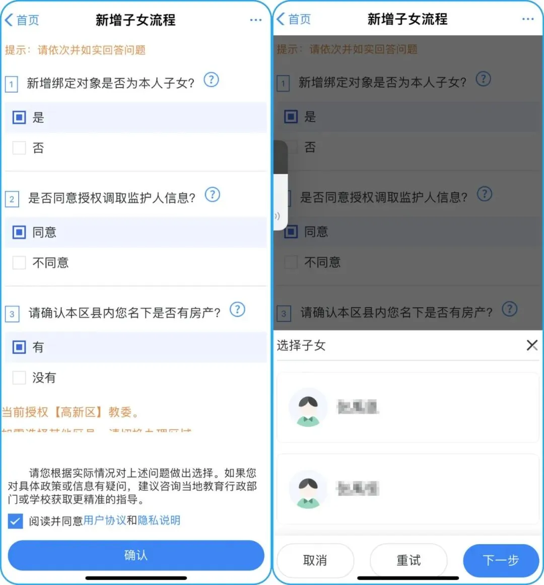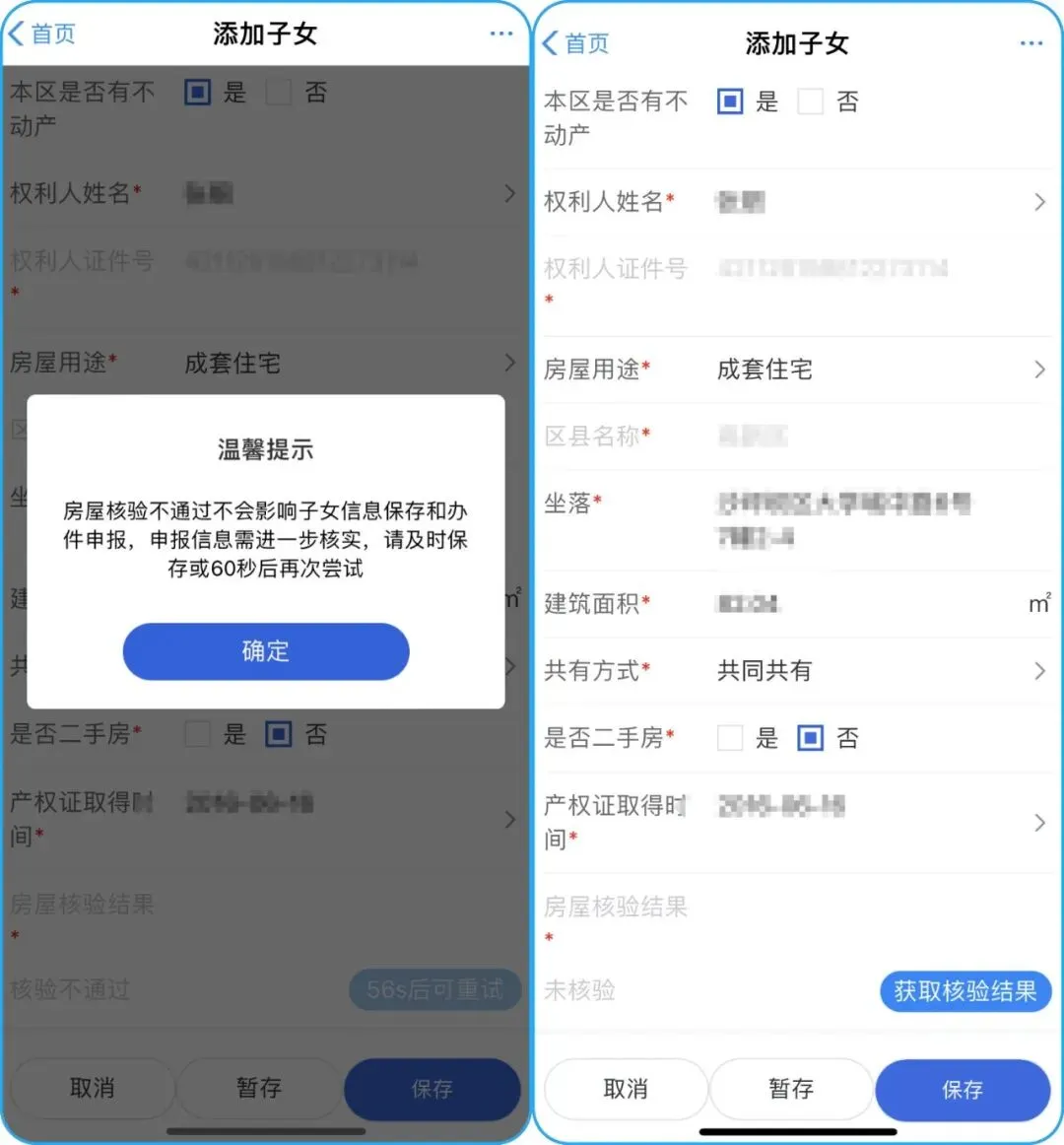 大渝老师特别提示:获取户籍地址失败和房产获取核验结果失败,均不影响子女信息保存以及后续在线报名,只是填报信息需要进一步核实。家长们无需多虑!