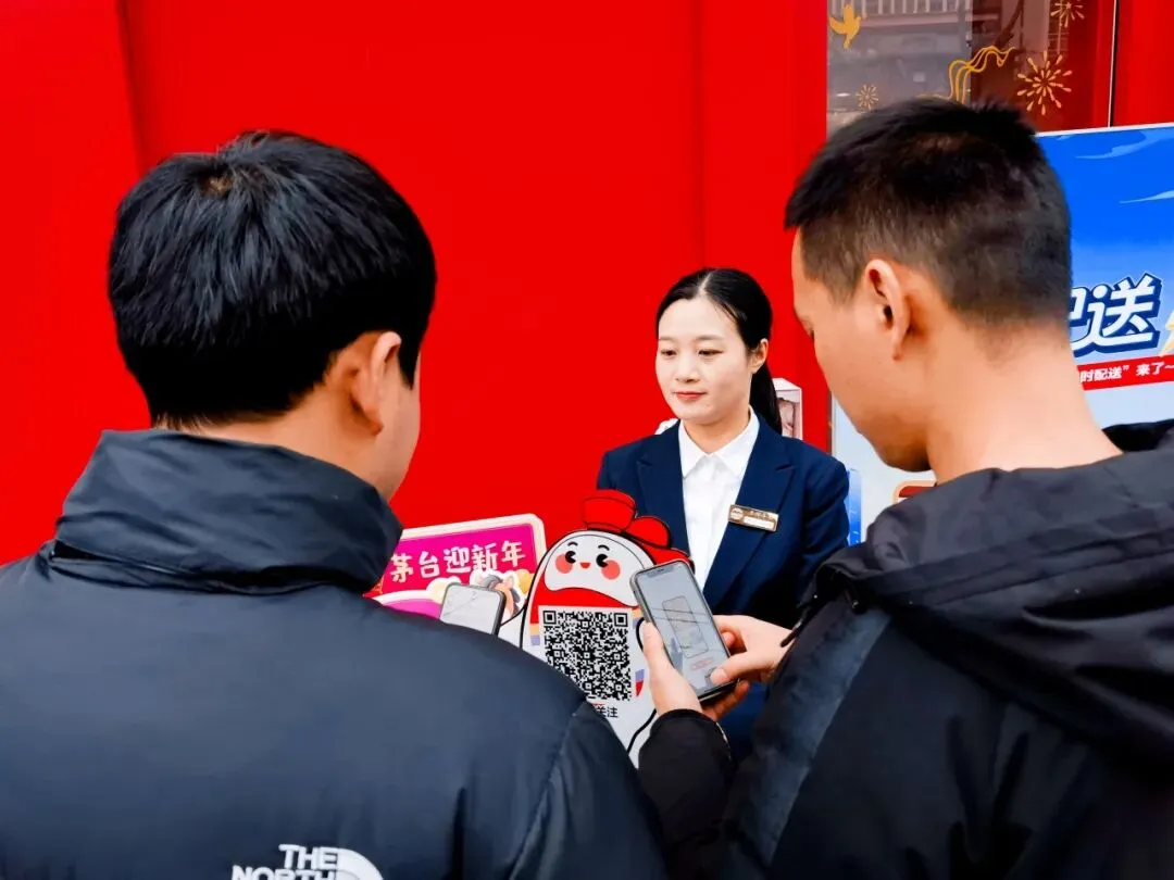 活动现场洋溢着节日的喜庆氛围,工作人员还特别准备了新春小礼品,让消费者在了解便捷购酒服务的同时,更能感受到茅台承载的传统文化与佳节情怀。