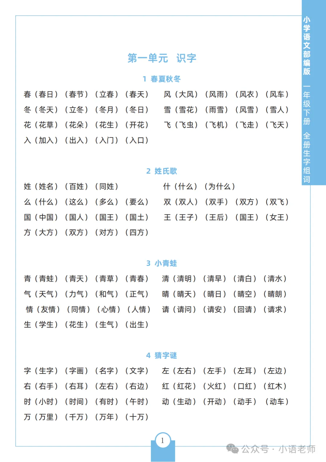 本站文章均为手工撰写未经允许谢绝转载:夜雨聆风 » 一年级语文下册全册生字组,免费下载