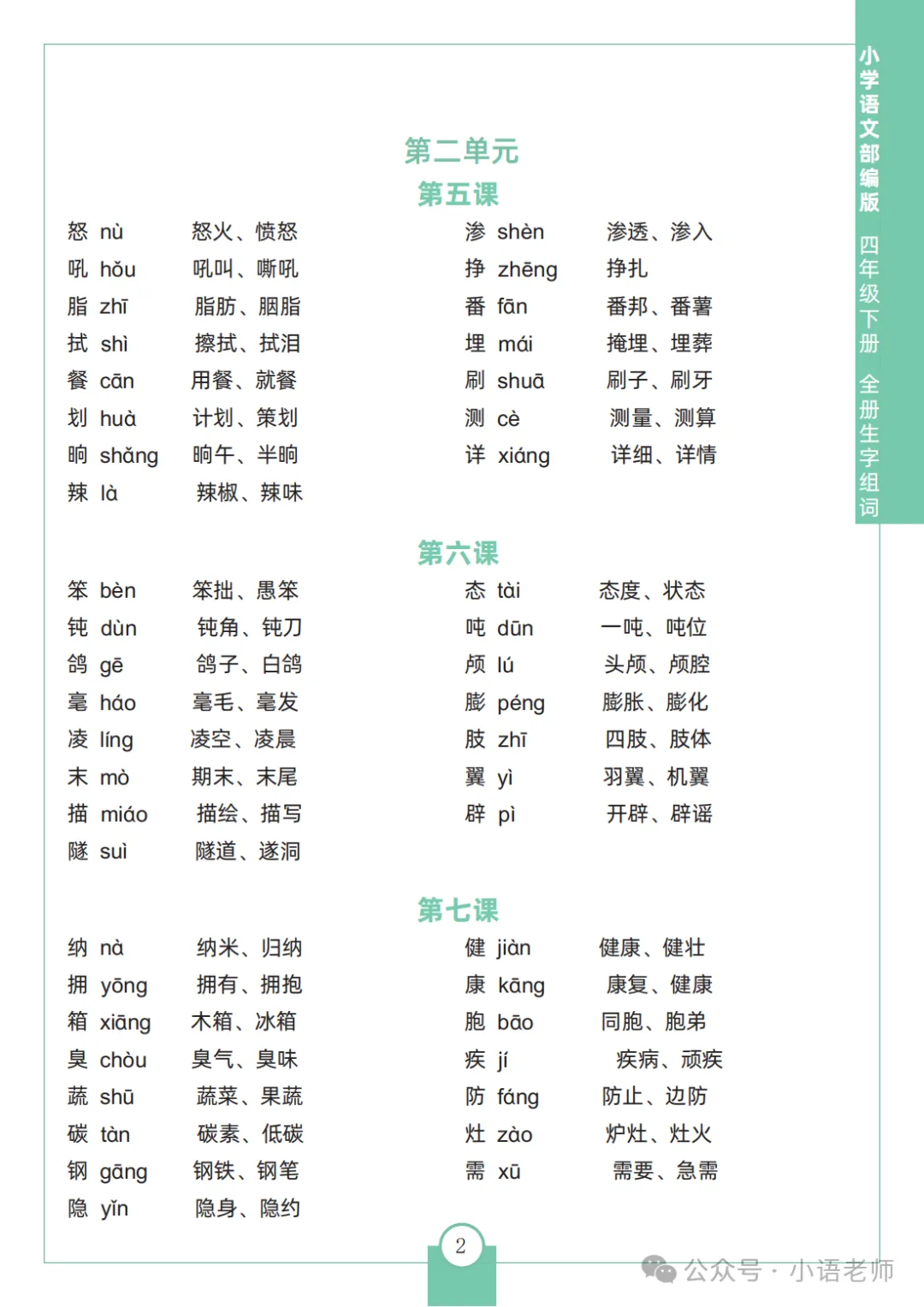 四年级语文下册全册生字组词,免费下载
