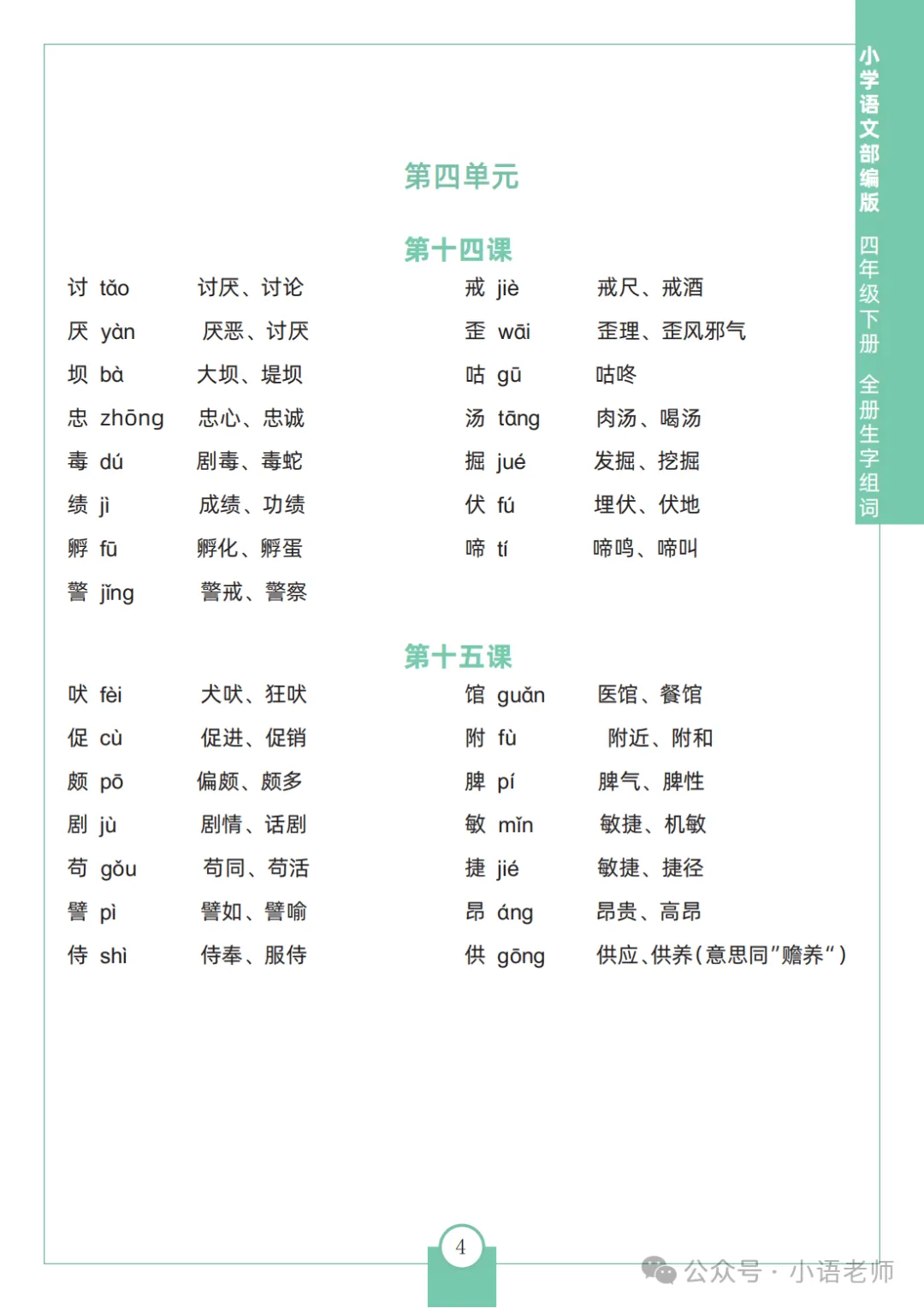 本站文章均为手工撰写未经允许谢绝转载:夜雨聆风 » 四年级语文下册全册生字组词,免费下载