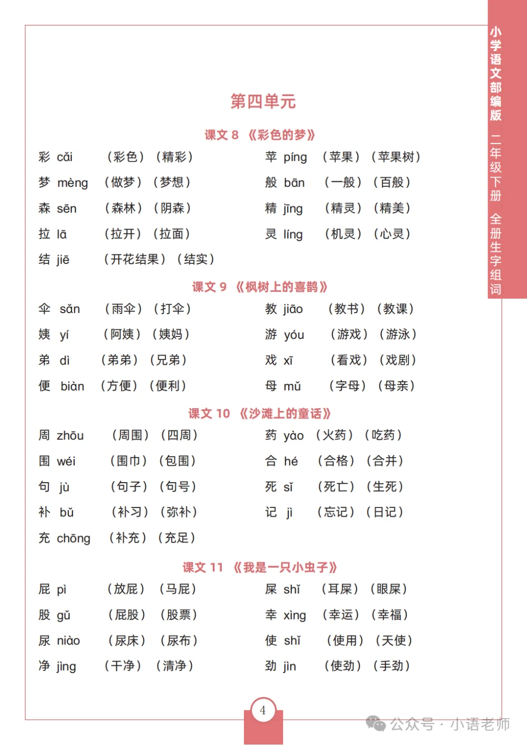 -      四年级语文下册全册生字组词,免费下载
