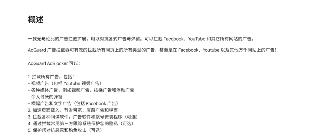 注:如果你已经使用了 AdGuard,建议补充 uBlock Origin,性能更好,占用更低。