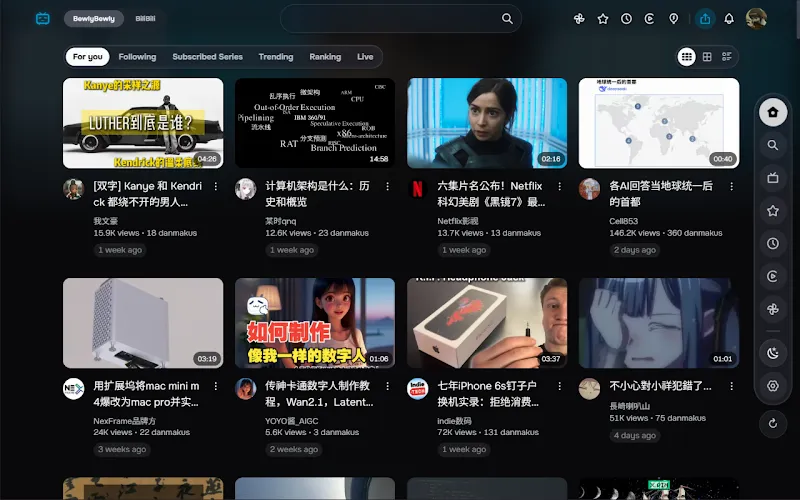 点评:嫌 B 站首页推荐太乱?广告太多?BewlyBewly 能重塑 B 站 UI,极简、清爽、无广,让你的 B 站体验提升一个次元。