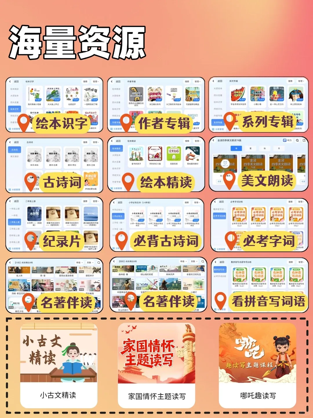 ✅ 海量资源,一站配齐涵盖经典名著、校内同步课文、绘本、习题及专项训练(字词/阅读/写作),从整本书阅读、识字拼音,到仿写作文,伴学打卡资源全面覆盖。