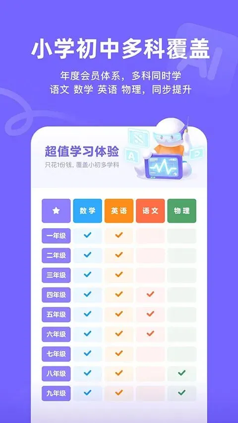 1、[个性化自习规划] 根据孩子当前水平定制学习规划,周周更新周周练。2、[沉浸式互动动画] 媲美电影质感,沉浸式互动动画,讲透知识点。3、[智能AI答疑] 首创苏格拉底启发式AI答疑,多轮问答引导主动思考。4、[海量资料库] 自由自主练习,哪里薄弱练哪里。5、[智能错题本] 根据历史错题,举一反三,个性化推题。6、[周末假期也能学] 学习时间灵活,随时随地,随到随学。7、[全球专业内容研发] 300人常青藤和清北内容研发团队,为内容保驾护航。8、[互助答疑社区] 四海之内皆「同学」,答疑互助,一起进步。9、[高效省时] 10分钟讲透一个知识点。
