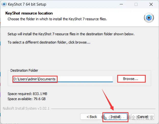 8、可自定义更改软件安装位置,这里小编选择安装在D盘;再点击【Install】