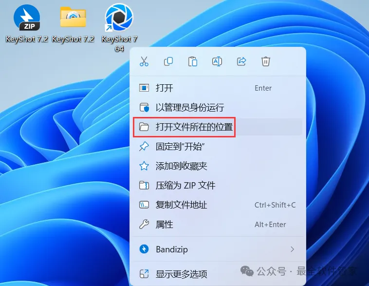 12、回到桌面,右键桌面上的【KeyShot 7软件图标】,点击【打开文件所在的位置】