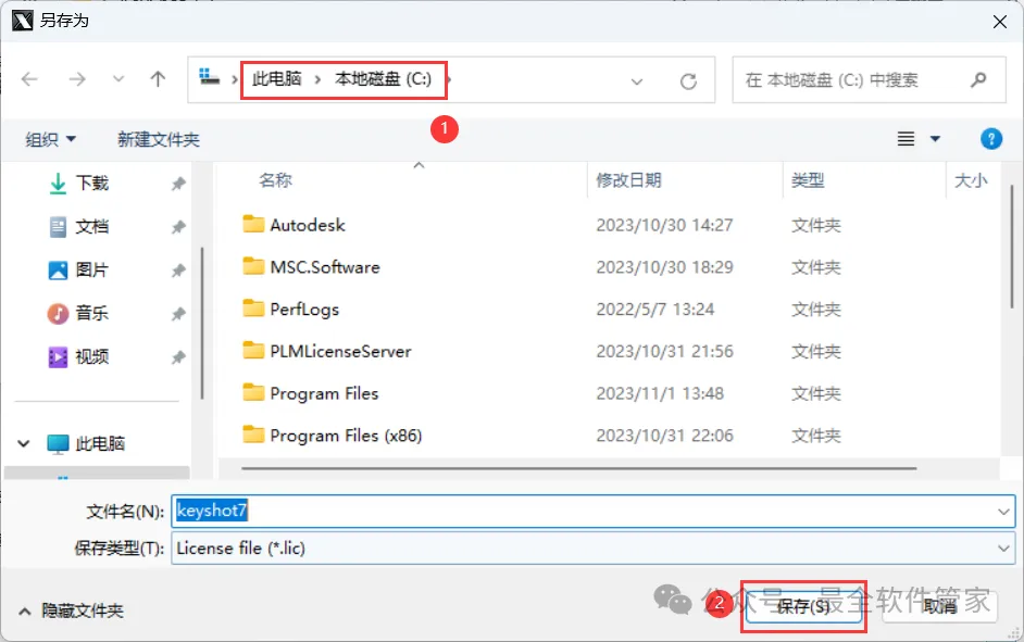 22、选择路径到C盘,找到并选中【Keyshot7】程序,再点击【打开】