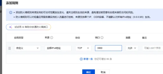 宝塔面板→ 左侧「安全」→ 防火墙 → 放行 3900 端口。