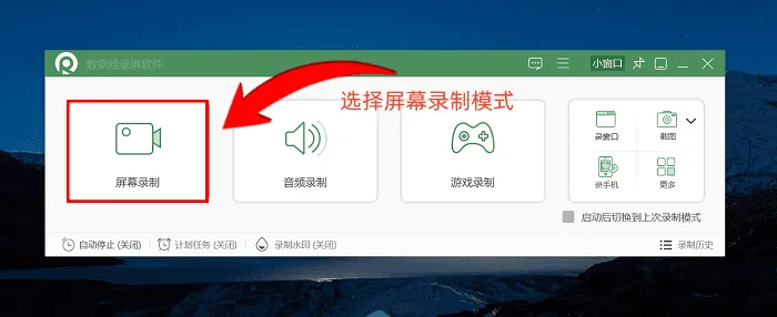 第1步:打开数据蛙录屏工具,根据自身需求选择合适的录制模式,以下讲解将以基础的“屏幕录制”模式作为操作参考;
