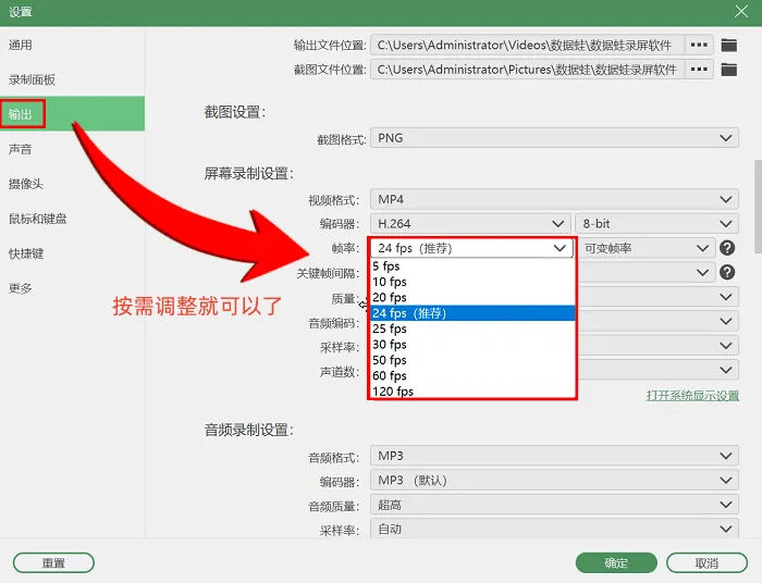 录制完成后,视频支持MP4、MOV、WMV等多种格式导出,分辨率范围从720P到4K,帧率最高可达到120fps,能够满足专业级录制的品质要求。