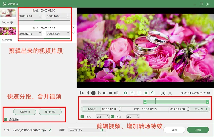 第4步:录制结束后,有后期处理需求的用户可直接点击【高级剪辑】实现无缝衔接,无需将文件导入其他剪辑软件,就能完成片段分段、冗余内容删除等操作。