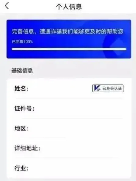2、完善个人信息(注意:实名验证后,才能使用APP全部功能);