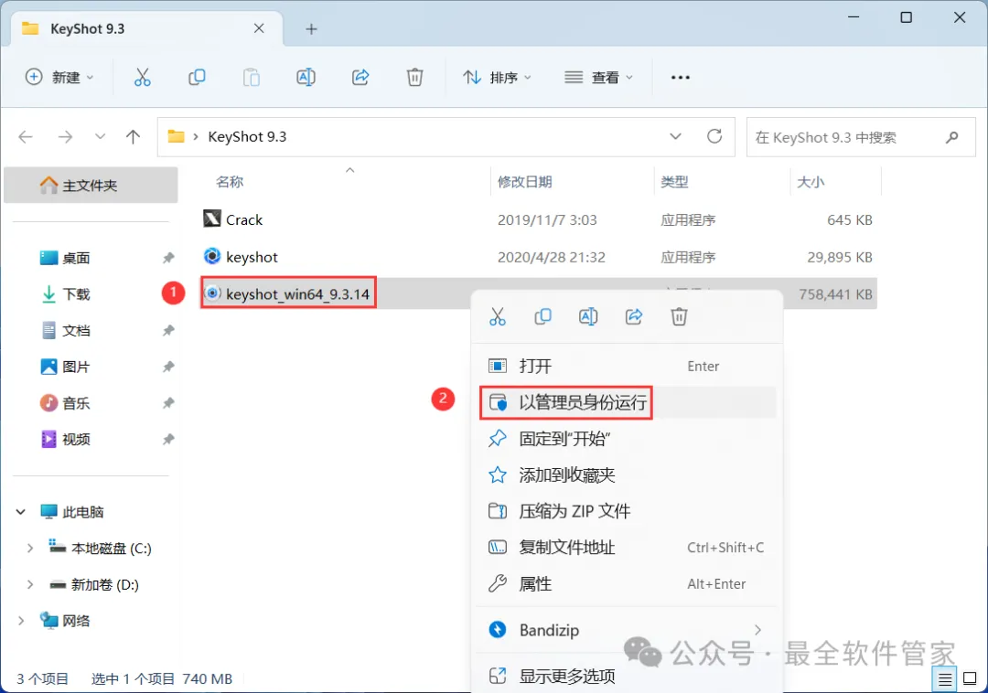 3、找到【keyshot_win64_9.3】应用程序,右键选择【以管理员身份运行】它