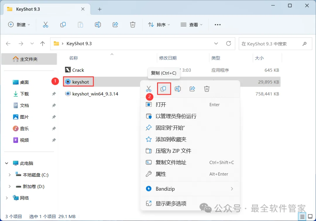11、回到KeyShot 9.3文件夹,找到【KeyShot】程序,再右键点击【复制按钮】
