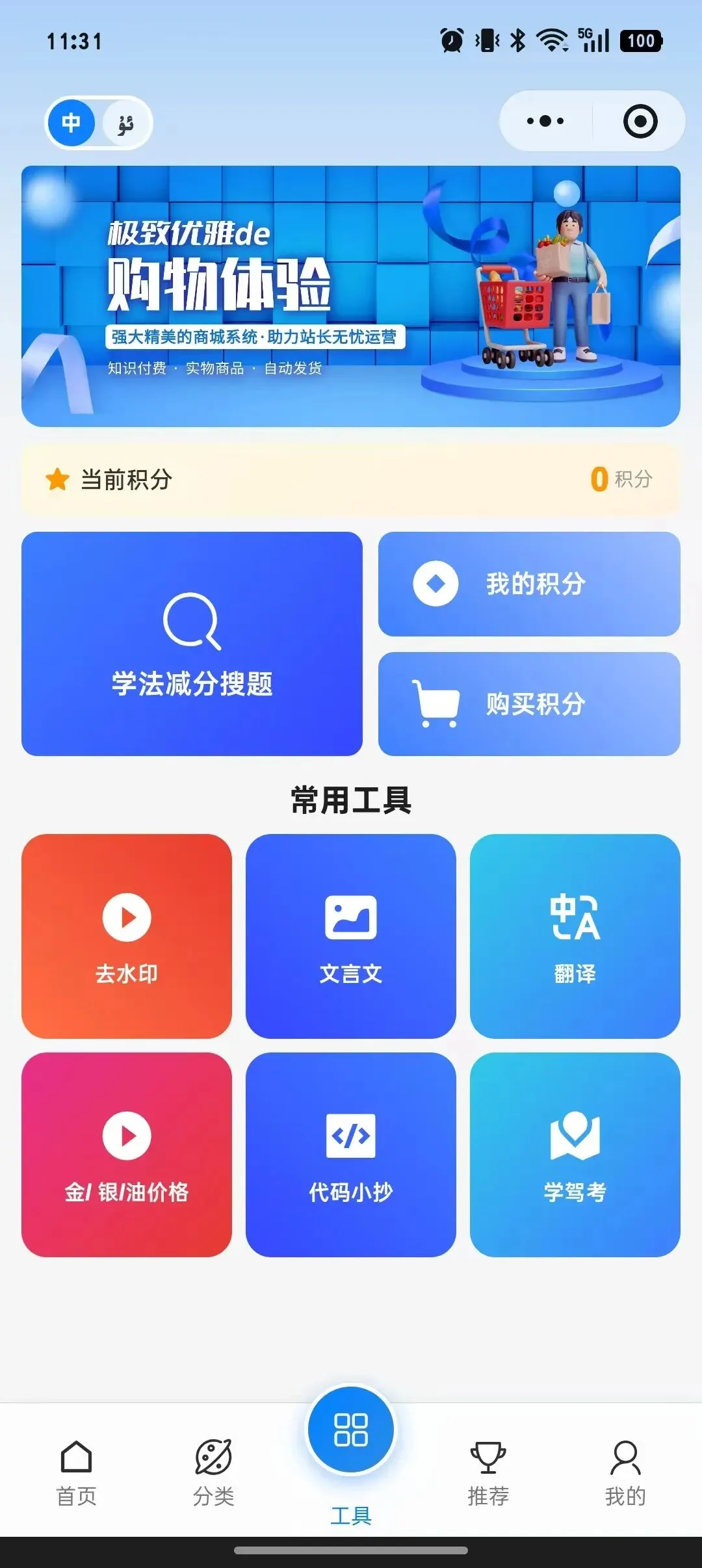 短视频去水印 · 金银油价查询 · 在线翻译 · OCR文字识别 · 代码小抄 · 驾考题库 · 文言文阅读 · 小程序直播