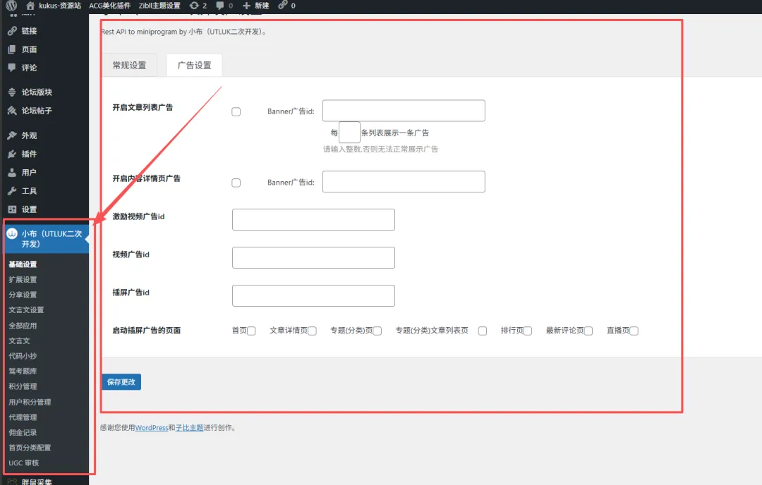 ▼ 后台仪表盘与插件设置面板