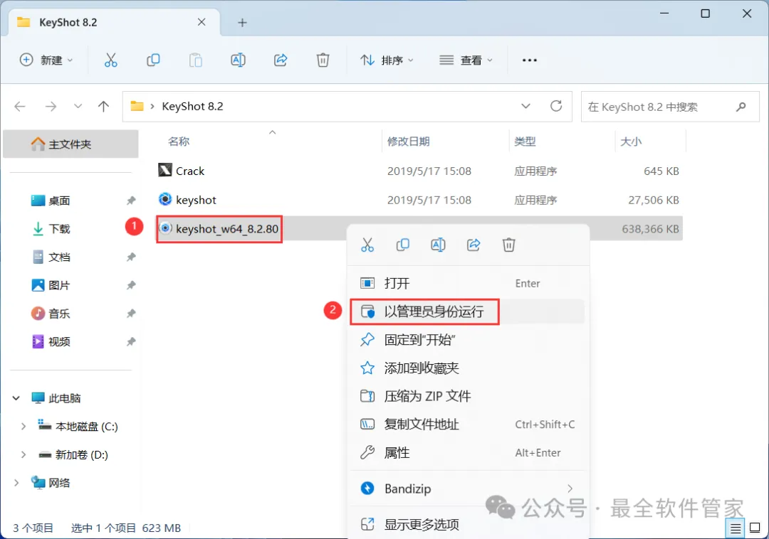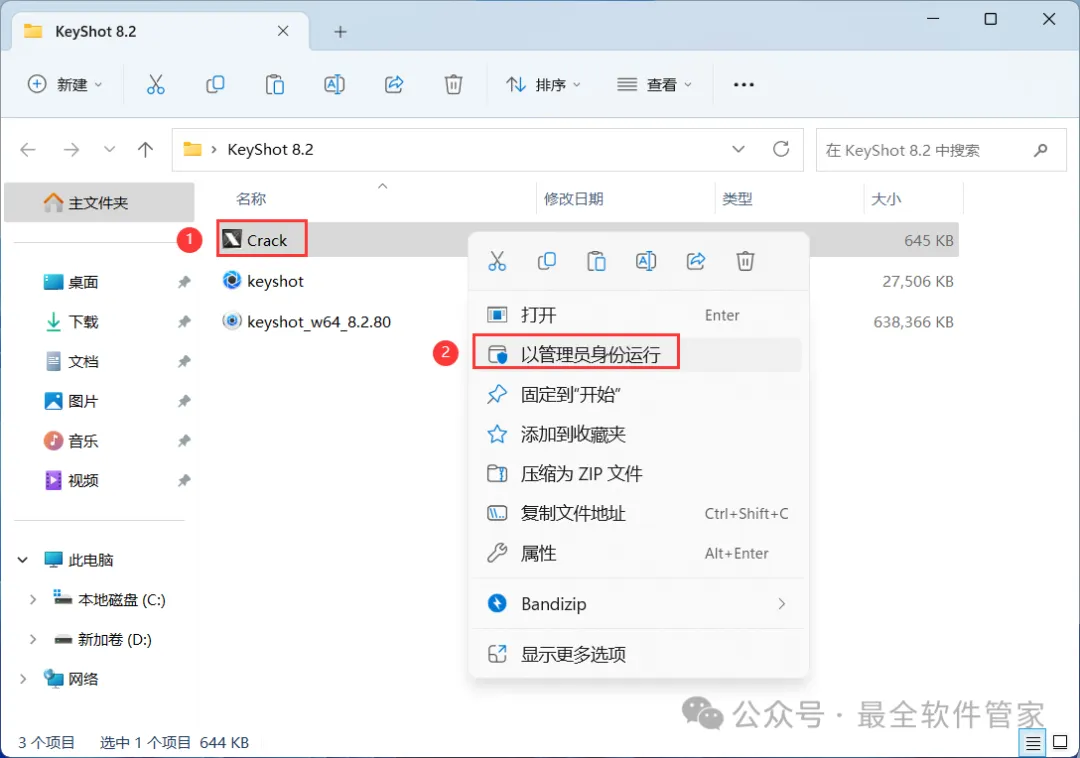 15、回到KeyShot 8.2文件夹,找到【Crack】程序,右键选择【以管理员身份运行】它