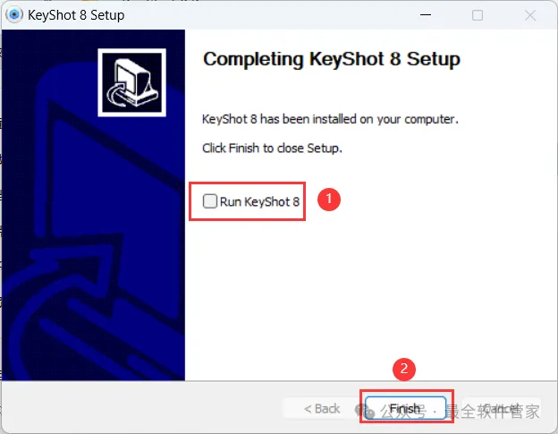 10、不勾选【Run KeyShot 8】,再点击【Finish】