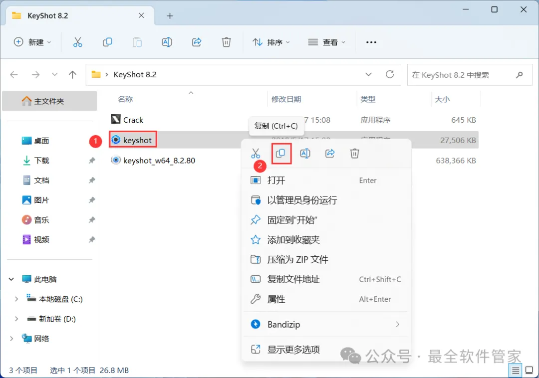 11、回到KeyShot 8.2文件夹,找到【KeyShot】程序,再右键点击【复制按钮】