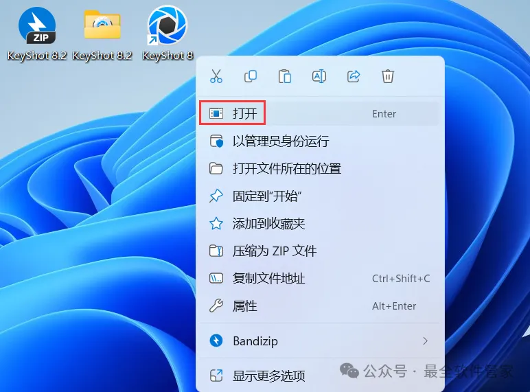 20、回到桌面,右键桌面上的【KeyShot 8软件图标】,点击【打开】