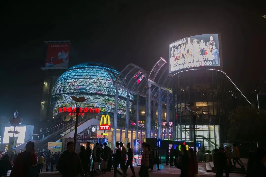 光谷步行街有一个很好认的大圆球,那就是大洋百货,从大圆球到1期的中心广场,是一条笔直的主路,过了广场就分出两条主路,左边的一条通往世界城广场,右边一条通往2期的西班牙风情街。