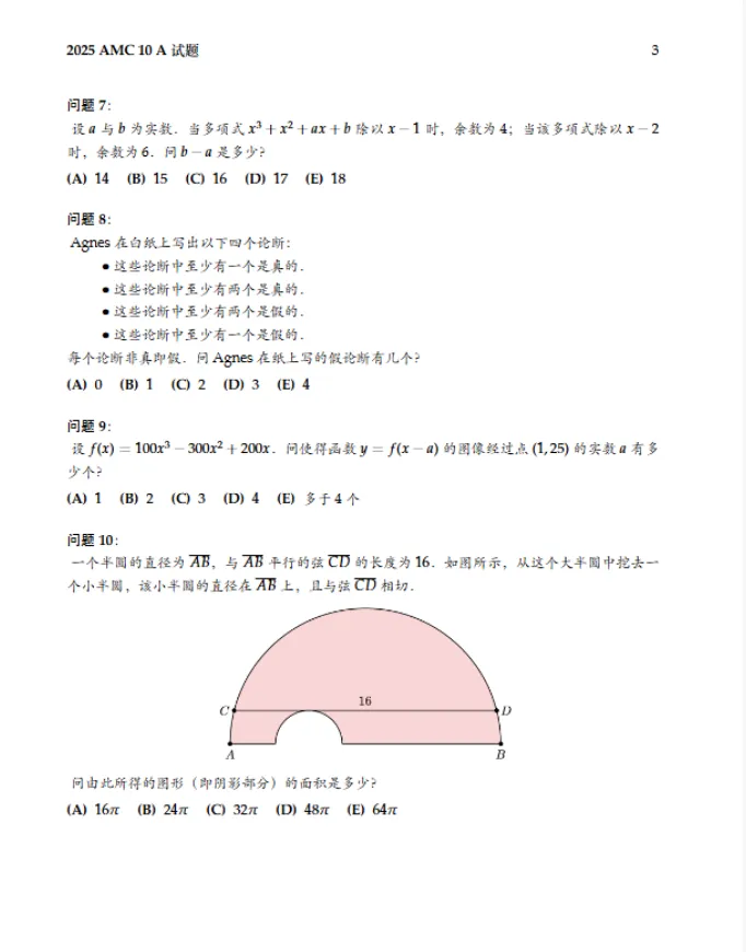 AMC10历年真题【2010-2025年】