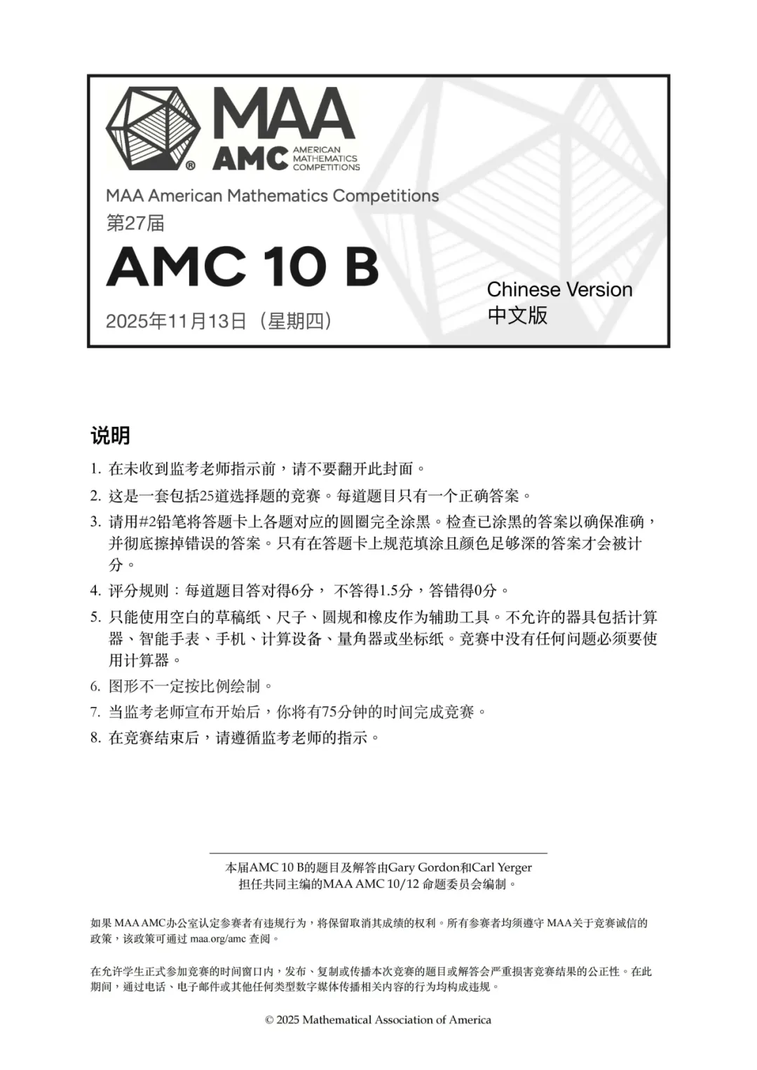 2025年AMC10 B卷真题