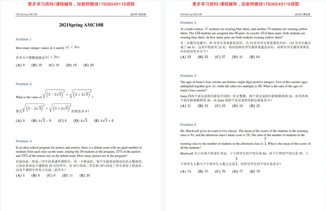 为了方便大家查漏补缺,我们也整理了AMC10历年真题解析,另外我们也推出了2026年AMC10直通车课程,欢迎家长们咨询17606549116了解。