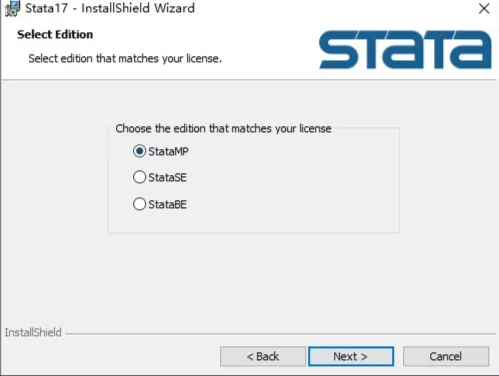 选择想要安装的版本,Stata BE为基础版、Stata SE为特别版、Stata MP为并行计算版;
