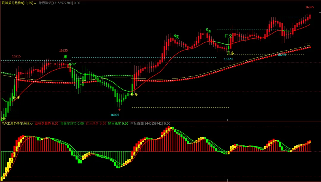 2、乾坤擒龙趋势8主图,macd多空趋势幅图