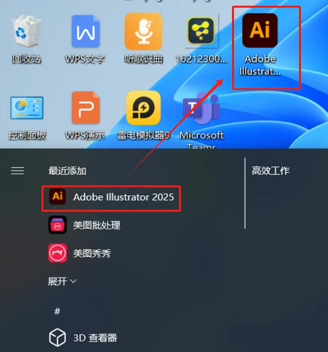 点击桌面左下角的【开始】菜单,在里面找到Ai图标,拖到桌面,形成快捷方式。