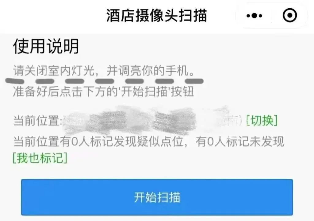 出去旅游住酒店担心会有隐藏摄像头?打开这个小程序对着房间扫描就能发现隐藏的红外线摄像头。