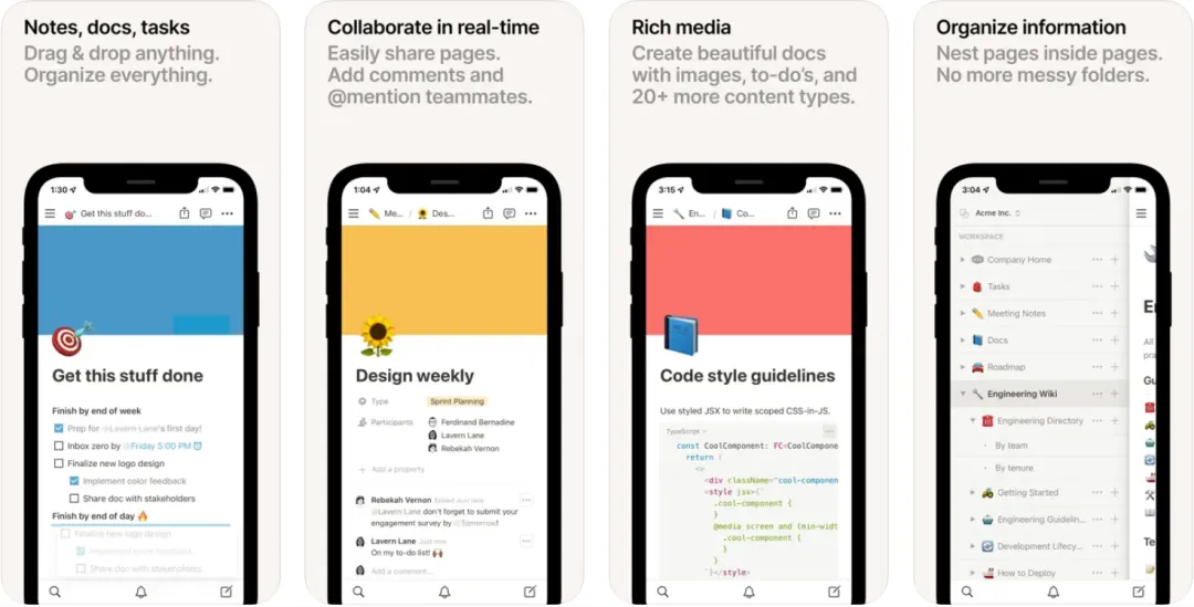 它通过支持积木式的文档和关联的表格(database),以及具有Markdown语法支持。