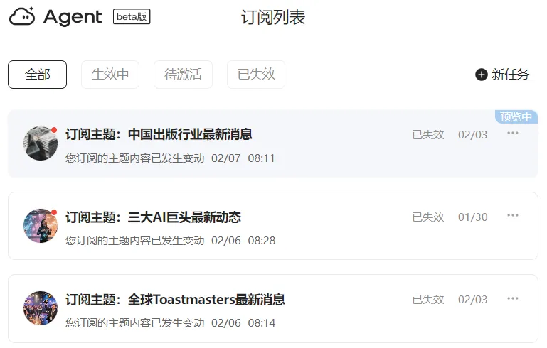 想新增订阅的话点击订阅助理,就可以在输入框里提需求了: