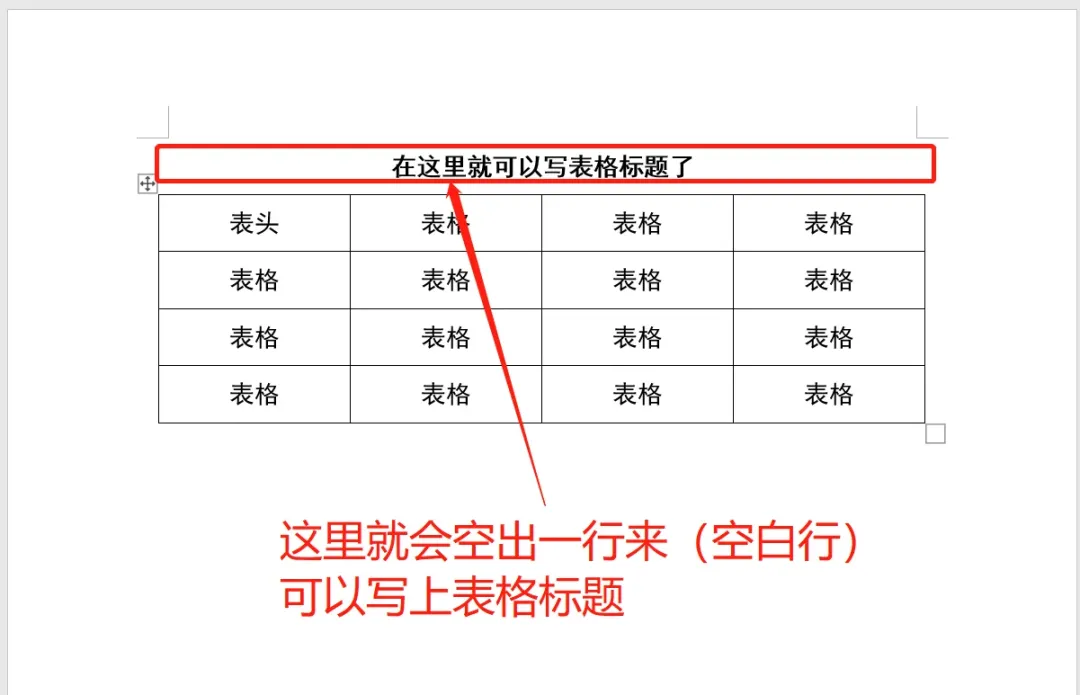 2️⃣ 可以看到表格上面空出来了一行,就可以输入表格标题,设置格式了。