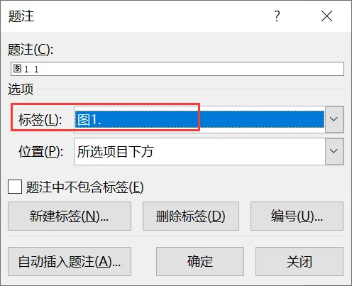 4️⃣ 在题注对话框中,我们从“标签”下拉菜单中选中合适的标签。