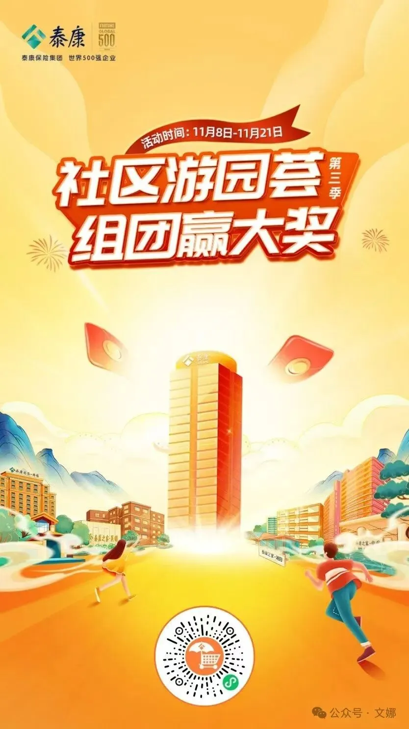 「社区游园荟 组团赢大奖第三季」泰康@你|邀好友,组团游社区,领海量红包。活动时间:2024年11月8日-2024年11月21日