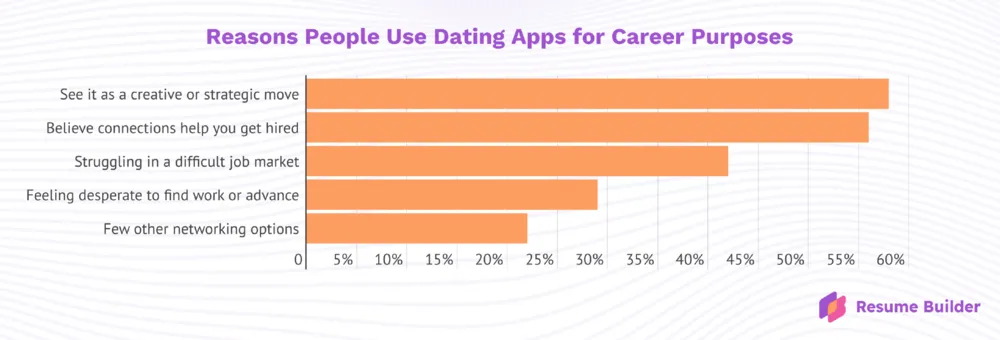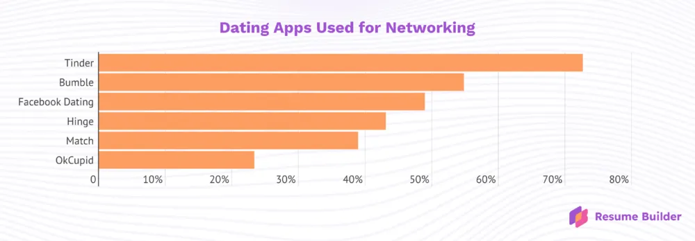 ResumeBuilder对2225名交友软件用户进行的一项最新调查发现,至少有34%的用户会利用这些应用寻找新的工作机会。