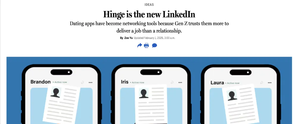 波士顿报的文章直接将Hinge称为新一代LinkedIn