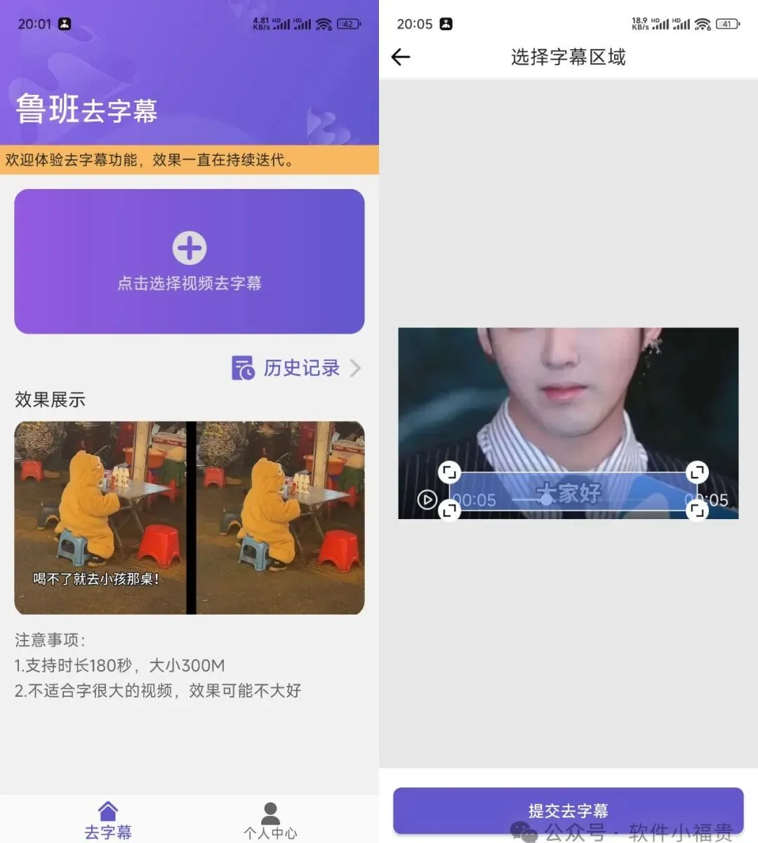 鲁班去字幕是一款基于AI技术的视频字幕处理工具。