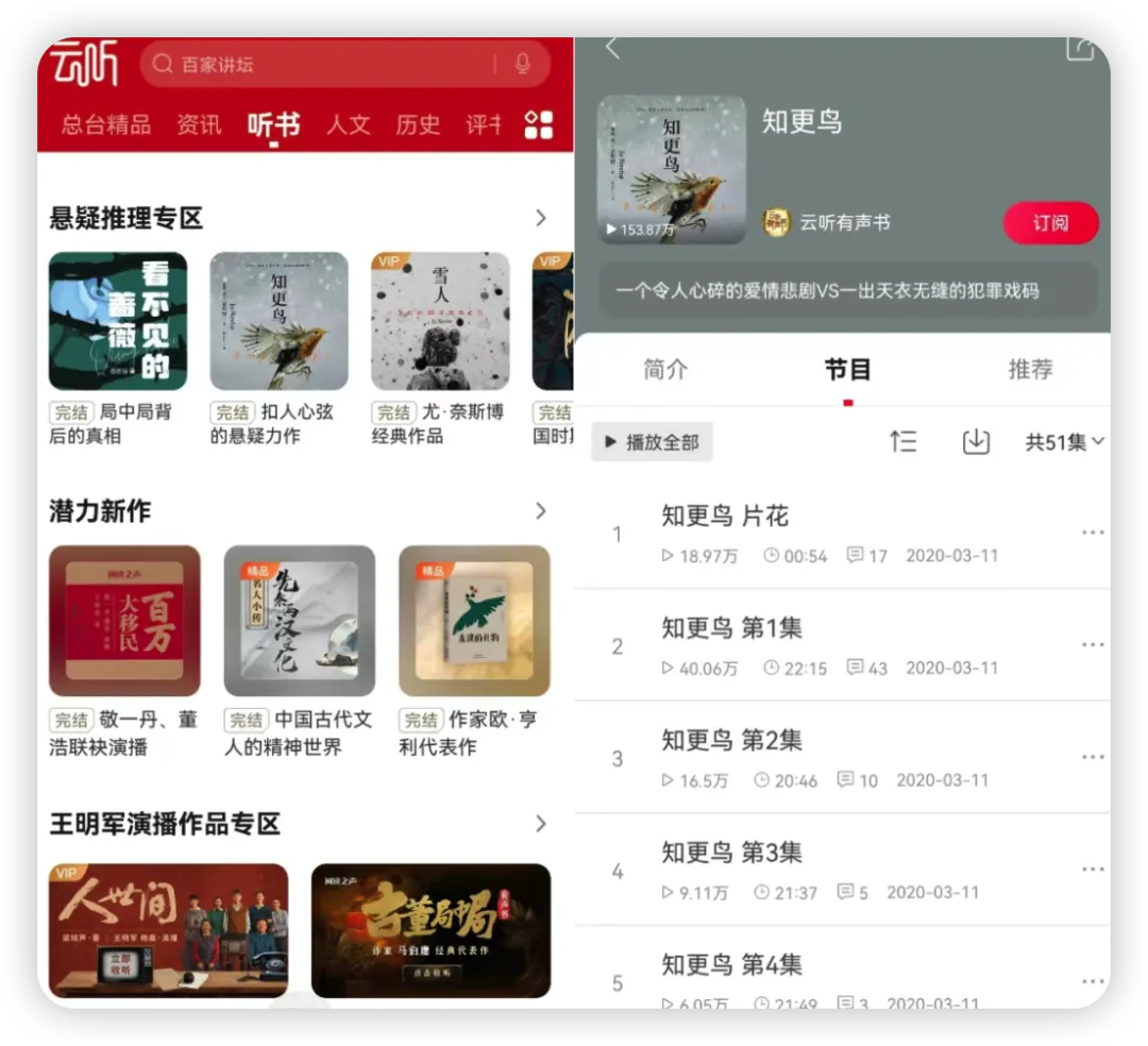 云听作为主流的听书平台,其最大的优势在于资源库的完整性与界面的美观度。